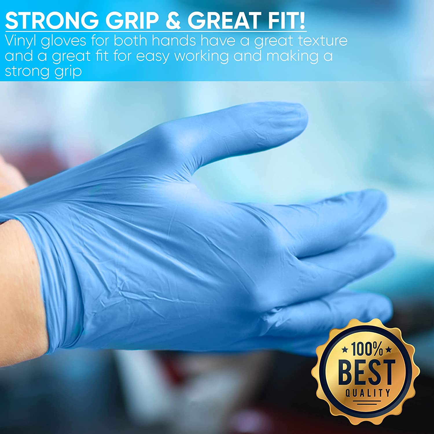 COMFORTABLE FIT: Vinyl gloves durable, comfortable-sturdy, high-quality vinyl material can provide incredible stretching force without tearing or shrinking. Comfortable, super soft and flexible powder free gloves .Vinyl gloves so you can easily throw after each use to keep your work conditions clean and organized.