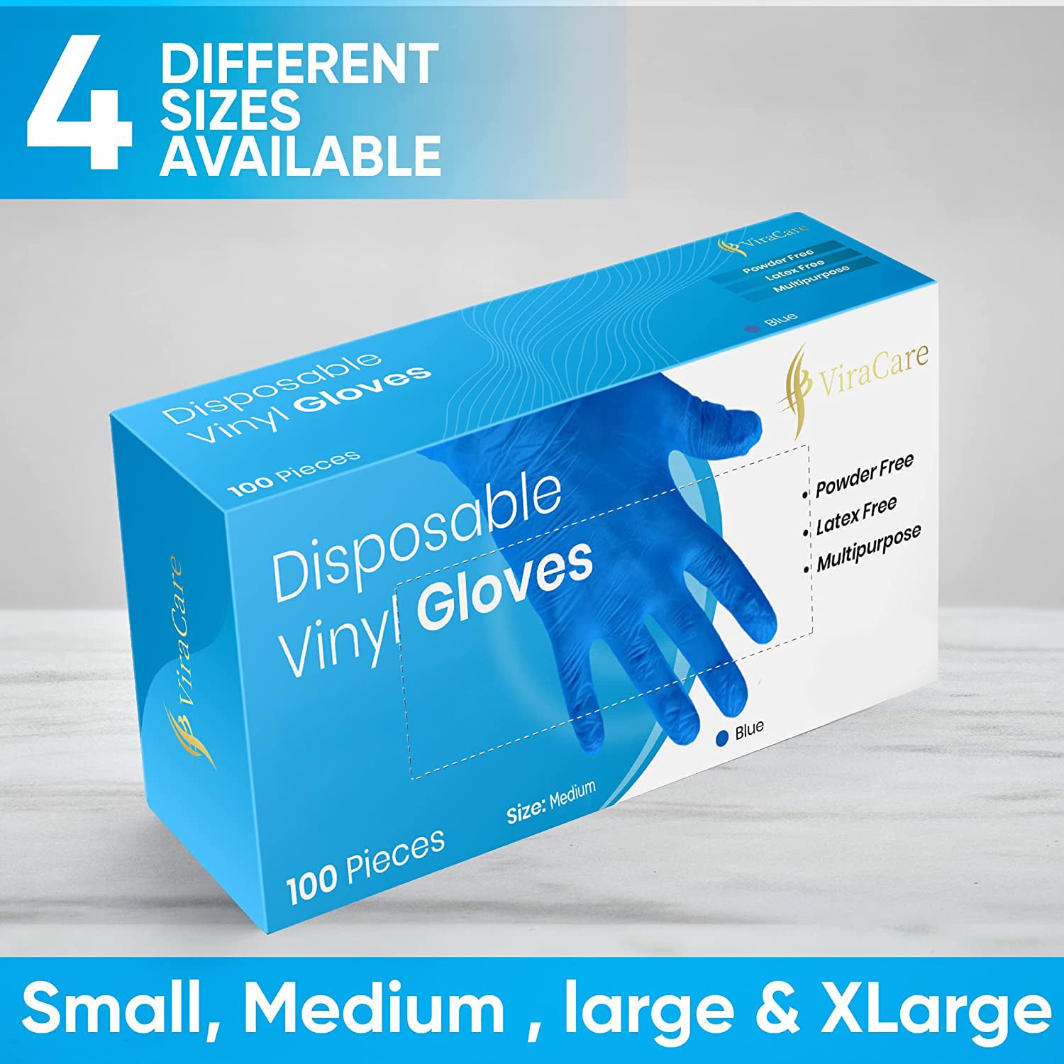 Blue Vinyl Disposable Gloves, S, M, L, XL (Qty: 1000)